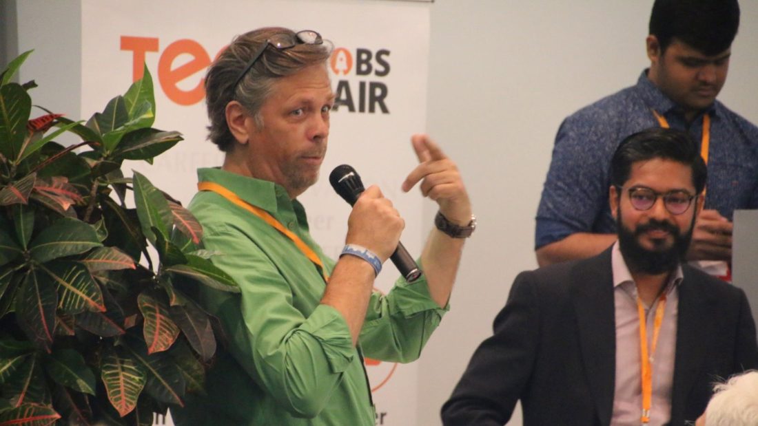 Auf der „Tech Jobs Fair 2018“ am 25. Mai im Siemens Conference Center war Kiez Büro Coworking mit dem „Mobile Coworking Space“ vertreten.