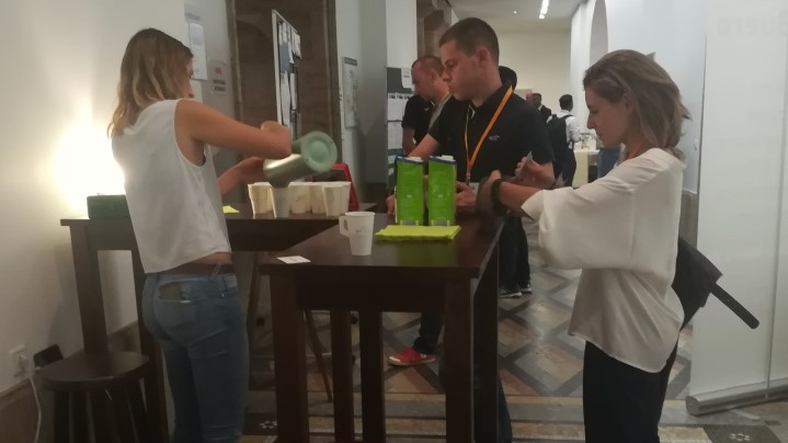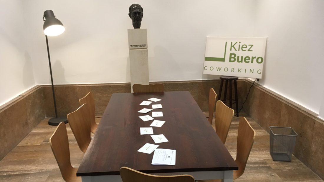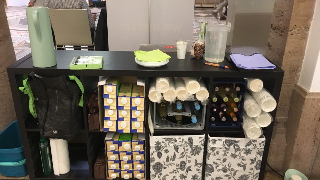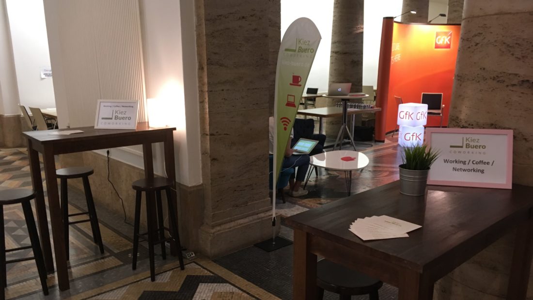 Für die Besucher und Besucherinnen der Messe haben wir Arbeitsplätze im bewährten Kiez Büro Stil angeboten und am Counter Kaffee ausgeschenkt – beides wurde rege und gerne in Anspruch genommen. Auch wenn es etwas kompliziert war – das Wasser für den Kaffee musste aus dem Keller geholt werden – haben Laura und Christiane alles im Griff behalten und Kanne um Kanne nachgekocht!